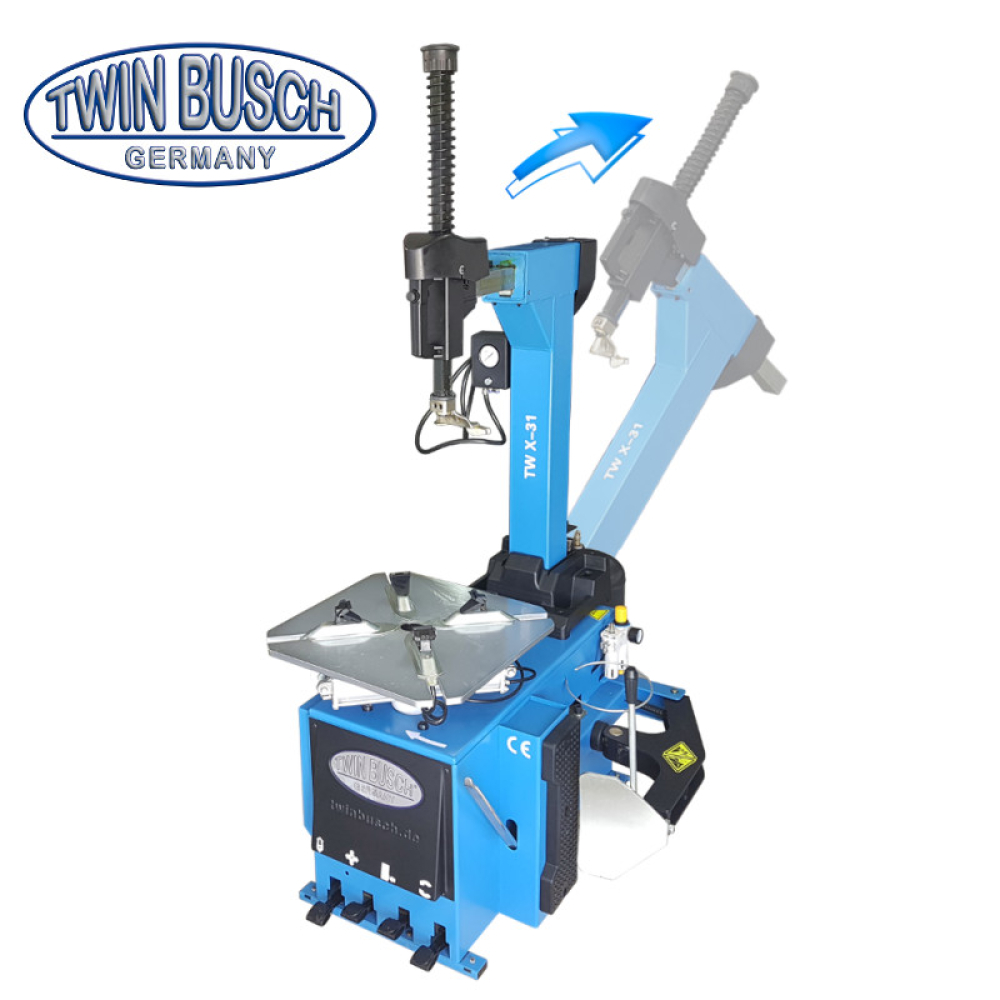 Монтаж-демонтаж машина за джанти до 24 "външен и 26"вътрешен захват, за автомобилни и бусови гуми, с пневматично задвижване /накланяне/ на ствола и заключване на монтажната глава. Патронник с автоматично центриране. Монтажният плот е оборудван със система за шоково напомпване, а машината е с вграден ресивър за сгъстен въздух. Мощен мотор, двупосочно въртене на плочата.
