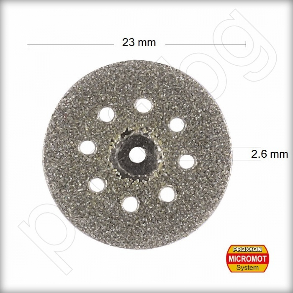 Диск за рязане с диамантено покритие и охлаждащи отвори за резец MIC - PROXXON MICROMOT, Предназначен за рязане на порцелан, керамика, пластмаса, фибростъкло /GRP/ и платки.
