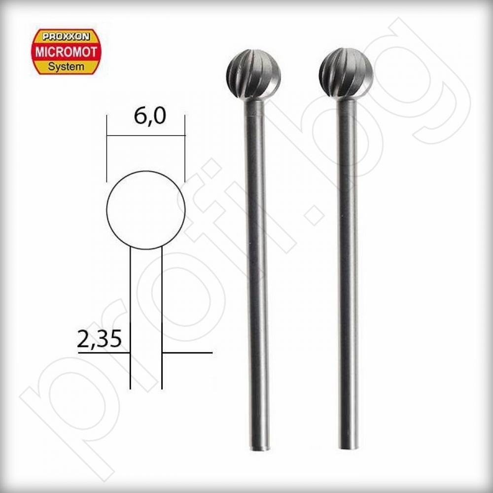 Фрезери 6 мм PROXXON MICROMOT, волфрам-ванадиева стомана, изработени от една цяла заготовка. Предназначени за работа по меки и твърди дървесини, цветни и благородни метали, пластмаса, гипс. За да постигнете максимална точност при работа е препоръчително да използвате стоманени цанги PROXXON MICROMOT