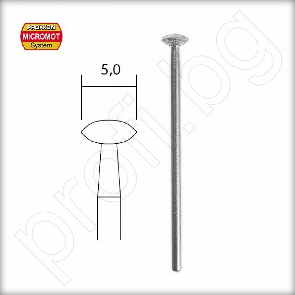 Фрезер 5мм PROXXON MICROMOT, изработен от неръждаема стомана, работната част е с покритие от диамантен прах. Предназначен за шлифоване и гравиране на твърди материали: стомана, стъкло, керамика, порцелан, пластмаса.