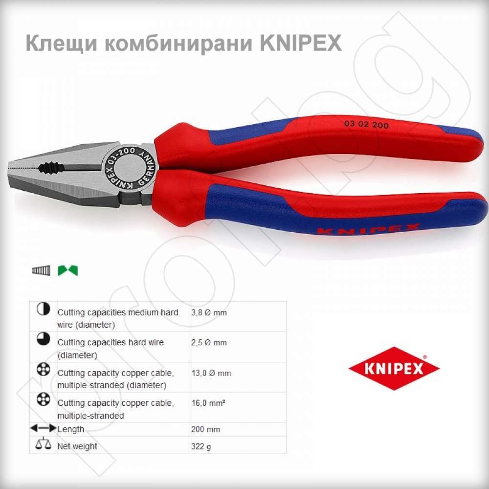 Комбинирани клещи KNIPEX от висококачествена инструментална стомана, ковани и закалени в маслена баня. Удобни ръкохватки с двукомпонентно покритие против изплъзване.