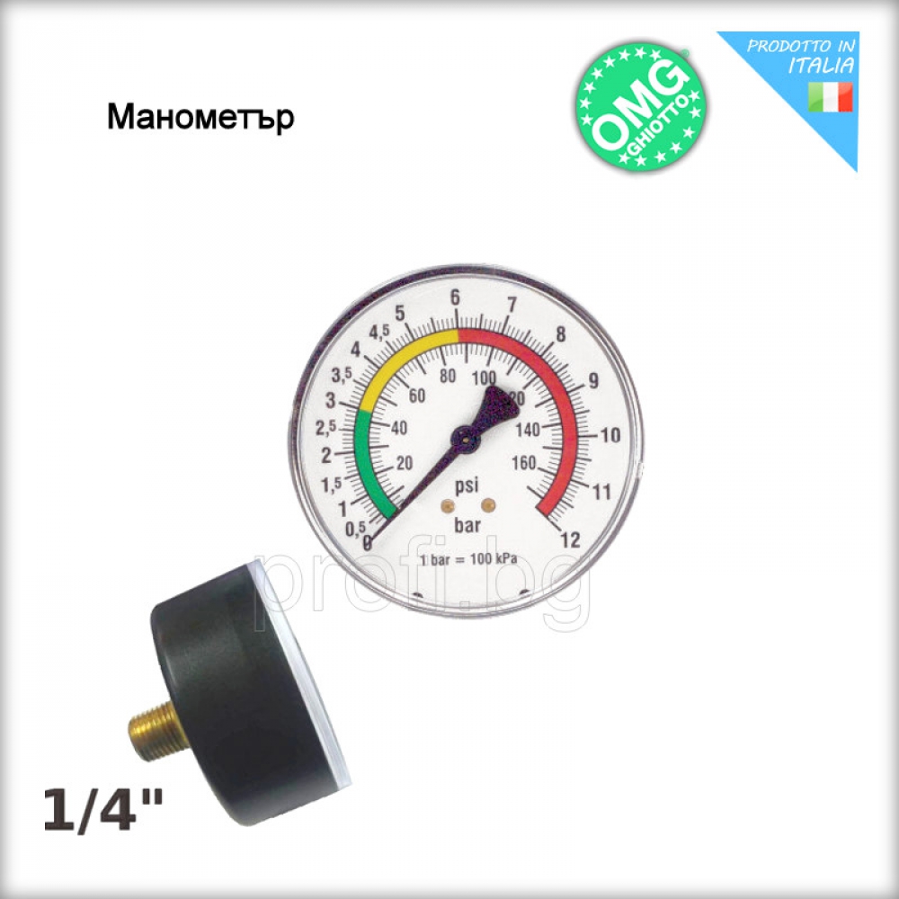 Манометър за пневматично налягане диапазон: 0-12bar