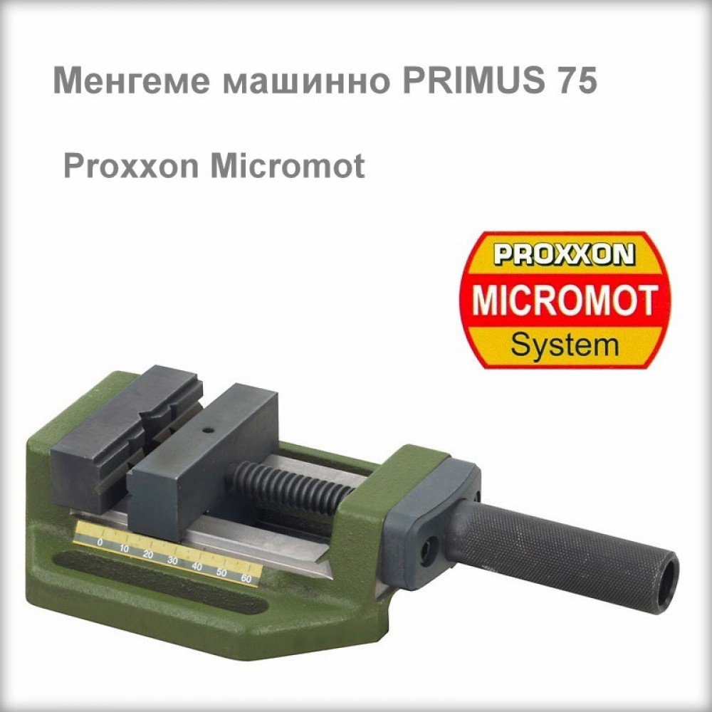 Машинно прецизно менегеме PRIMUS 75 с чугунена основа, със CNC струговани водачи. Сменяеми челюсти, трапецовидна резба на винта за леко подаване. Виж комплект Т-обр. гайки за монтаж.
