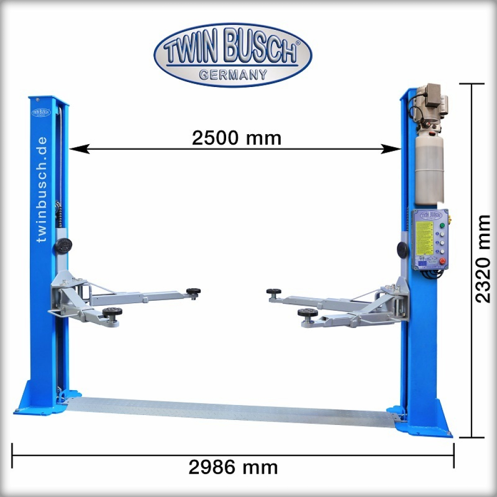 Подемник TW 242 GE Basic-Line е специално проектиран за ограничени пространства. С обща ширина по-малка от 3 метра и височина на колоната само 2.32 метра, той е идеалният подемник за ниски гаражи. Двуколонен 4,2t долна синхронизация, електрохидравличен с електромагнитно освобождаване на заключващия механизъм. Автоматичен ел.изключвател при достигане на максимална височина на повдигане.