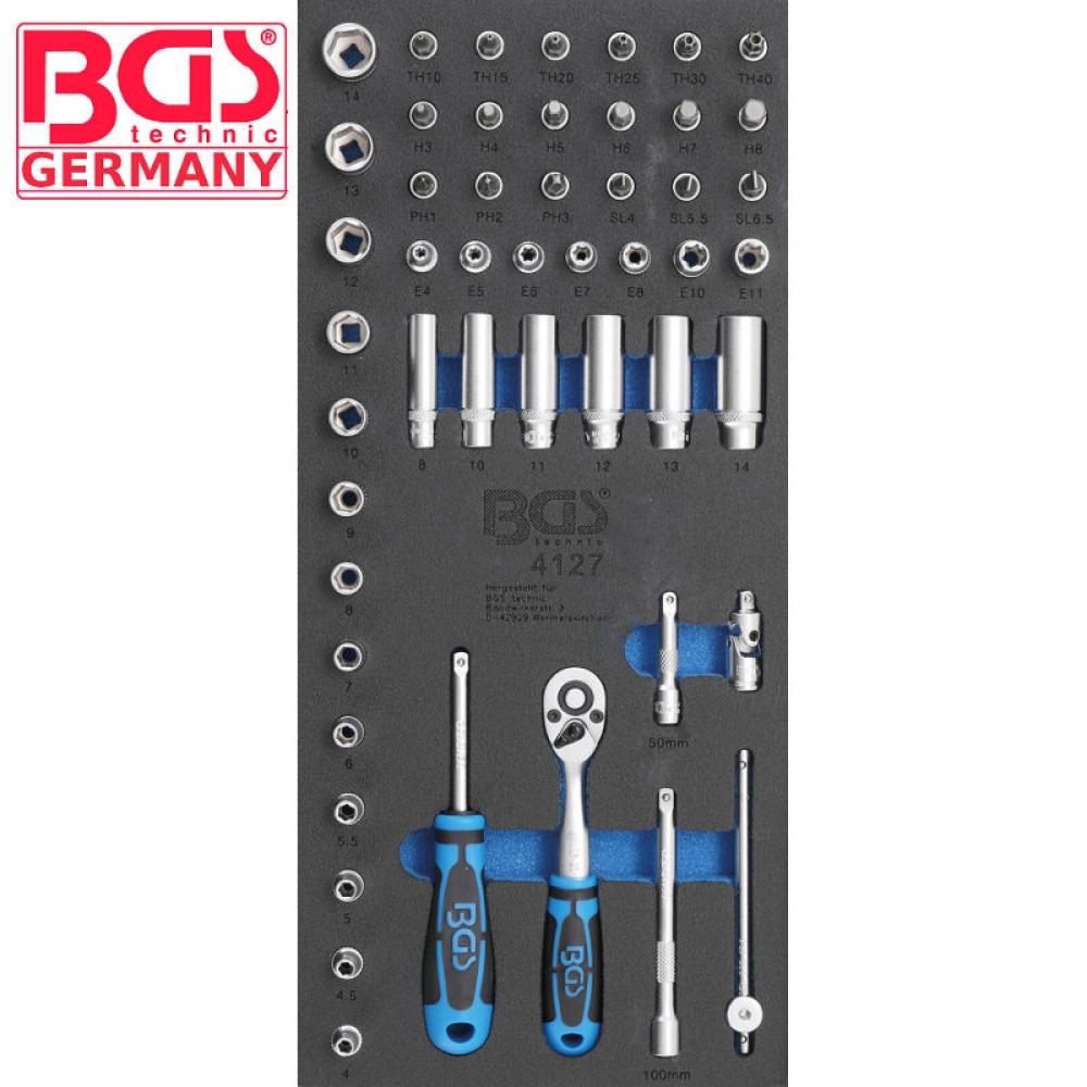 Комплект инструменти 1/4" 50 бр в подложка за поставяне в количка