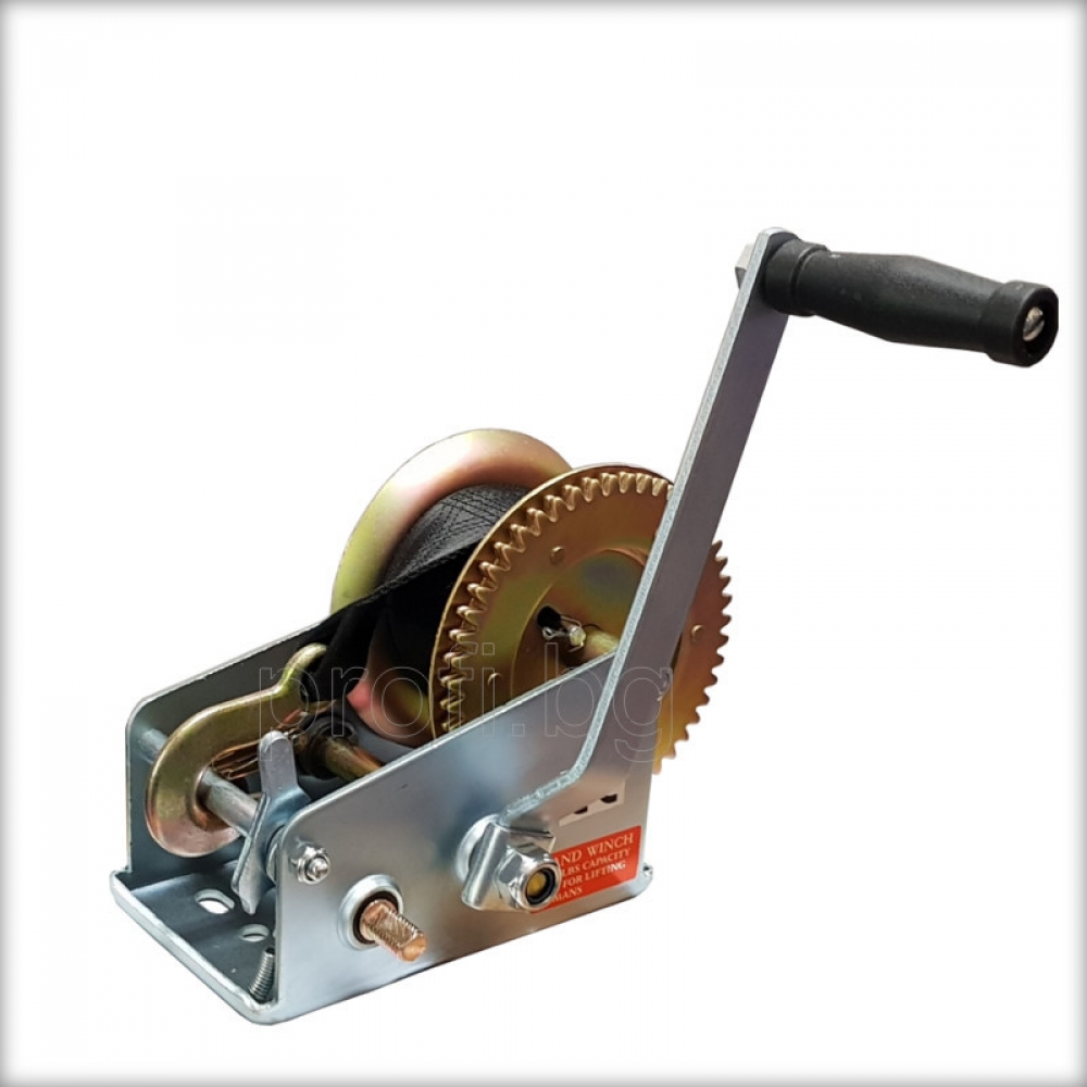 Ръчна лебедка за изтегляне капацитет : 1360 kg дължина на колана : 10 m тегло : 6 kg сапан