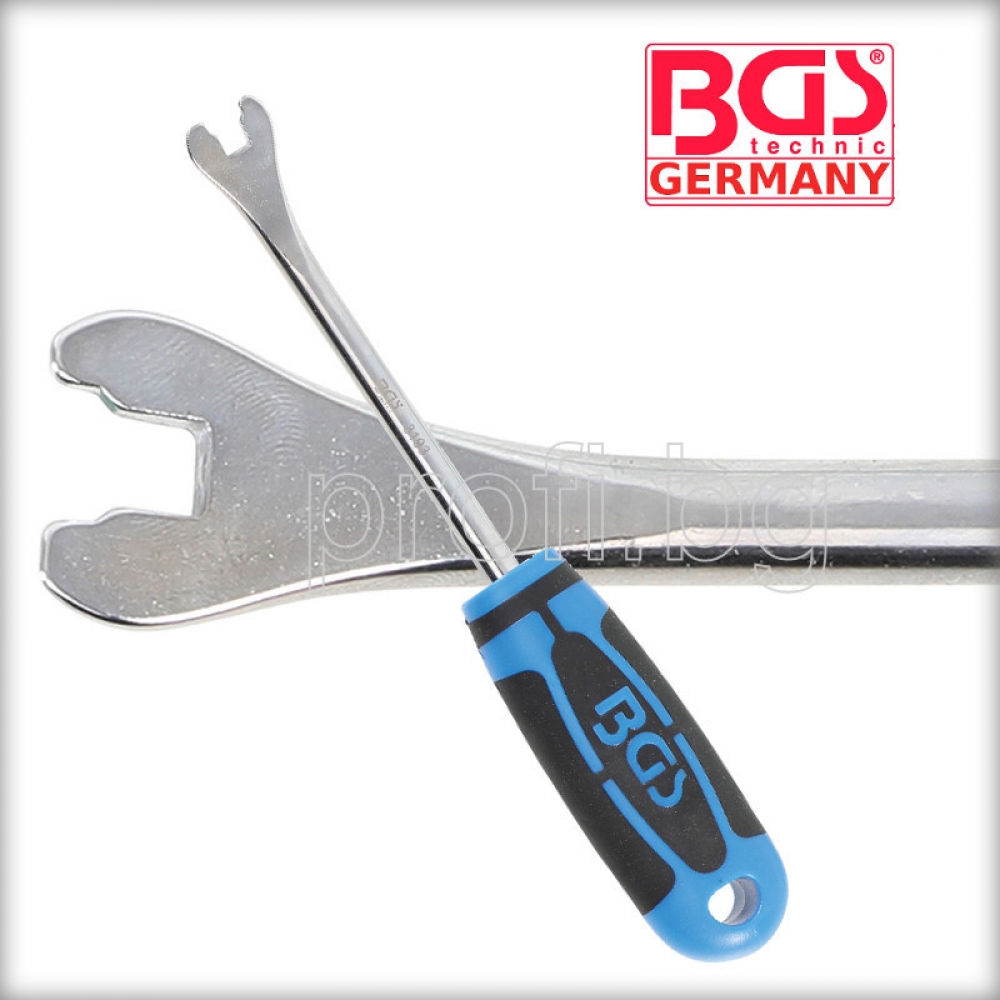 Тапицерска щипка за премахване на платмасовите капачки от панелите на вратите.