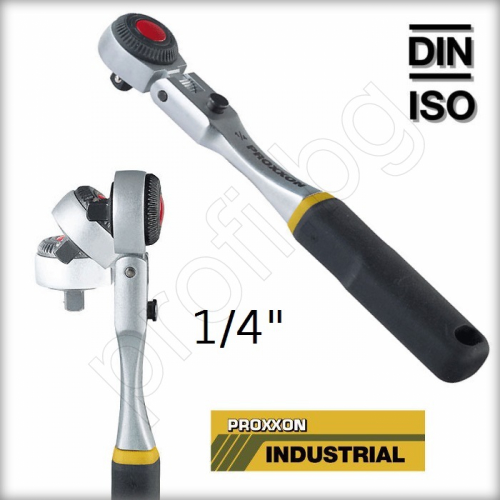 Тресчотка с подвижна глава, изключително удобна при работа в криви и тесни пространства. Главата може да бъде заключена в 6 позиции до 90° с натискане на бутона.