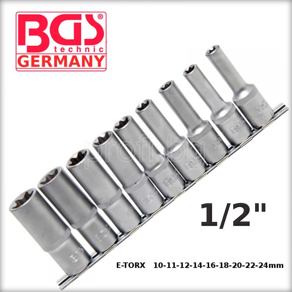 Комплект 9 бр. вложки 1/2" дълги E-TORX
